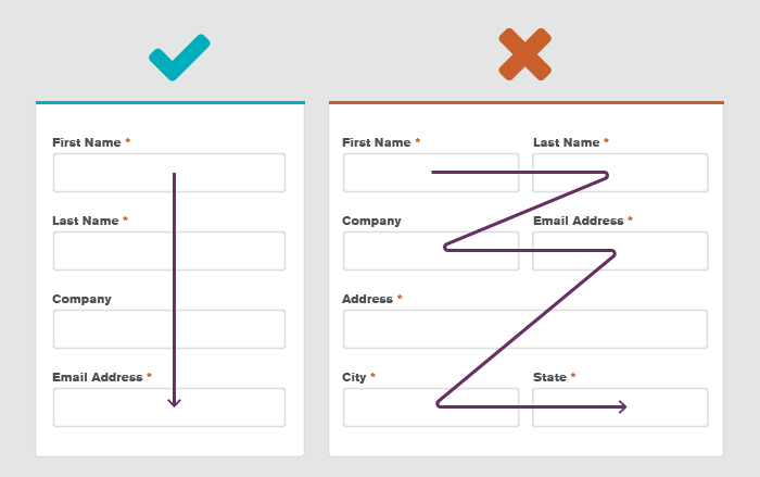 Think of filling out a form like climbing up a hill. Always start your forms with the easiest questions, like first and last name, and work your way up in difficulty.