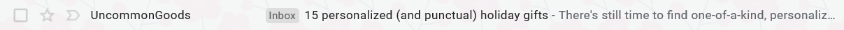 Lists are great for newsletters and emails that contain blogs. They also work well for promoting products and services, like Uncommon Goods (www.uncommongoods.com) does here: