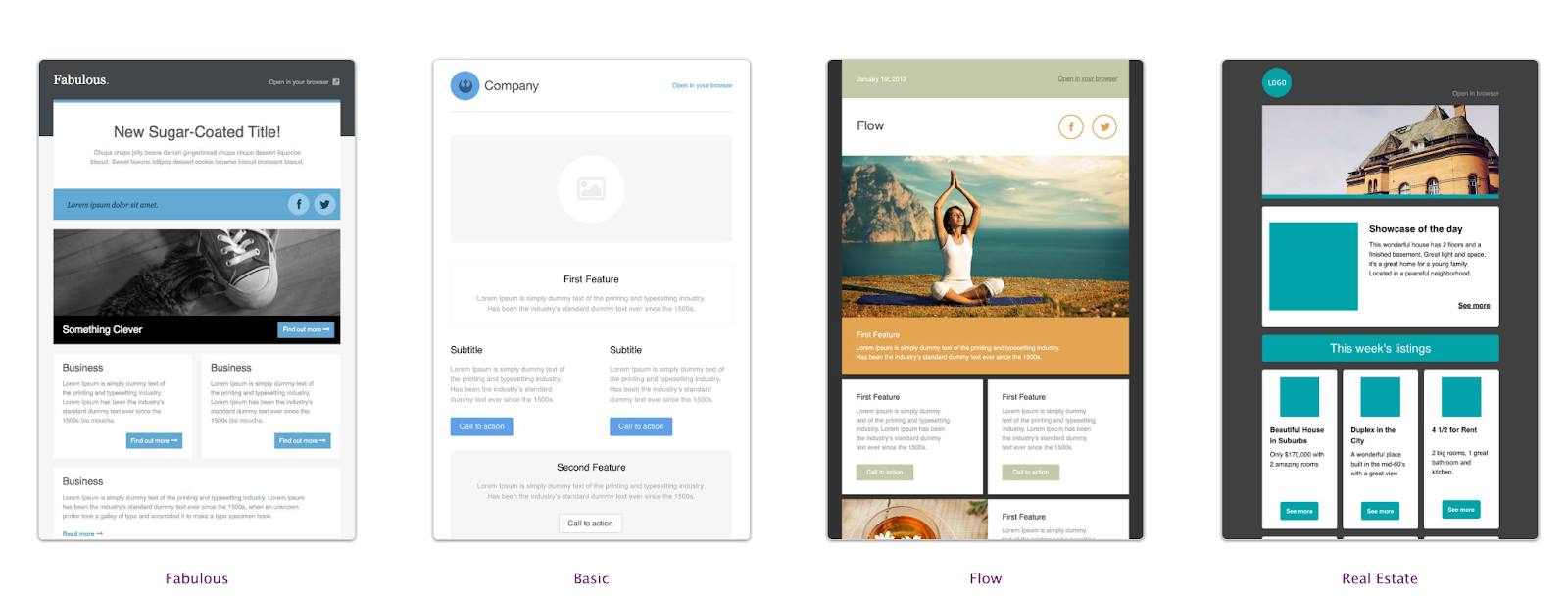 Cakemail is another great resource for customizing your newsletter email campaigns. Divided into seven different categories based on popularity, industry, and purpose, Cakemail’s 700-plus email newsletter templates include engaging visual elements and plenty of space to input your own information.