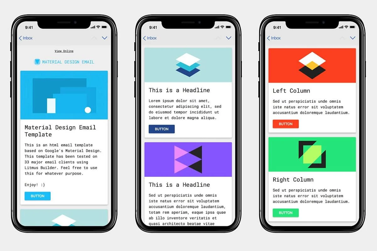 Material Design is highly responsive and compatible with all major ESPs. Additionally, the free, downloadable template comes with customizable HTML files, making it easy to adapt to your company’s specifications and needs.
