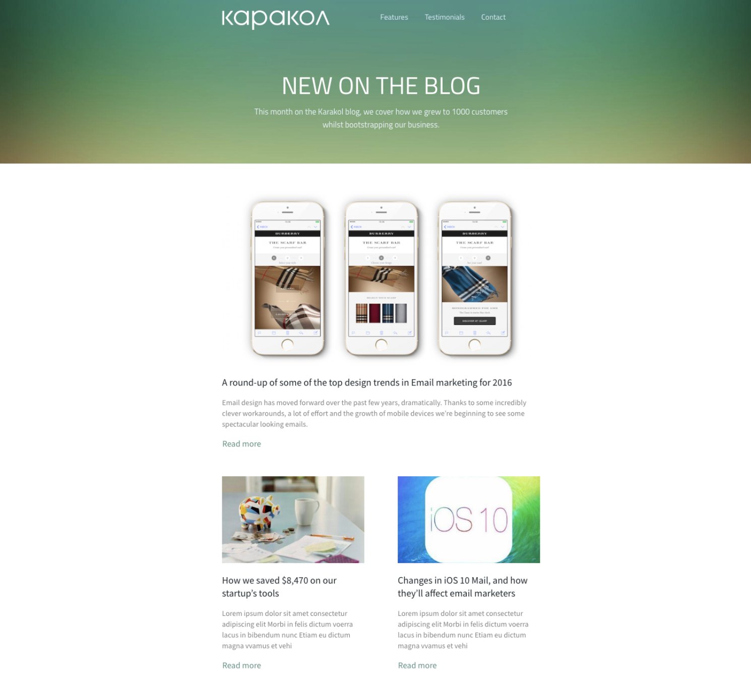 EmailOctopus is another resource for marketers looking to boost their email efforts. They have a variety of email newsletter templates for different industries, and one of their most useful templates is Karakol, which features a sleek and highly responsive design.