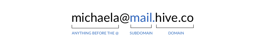 This example from Hive.co demonstrates the anatomy of an email address, including the domain and subdomain.