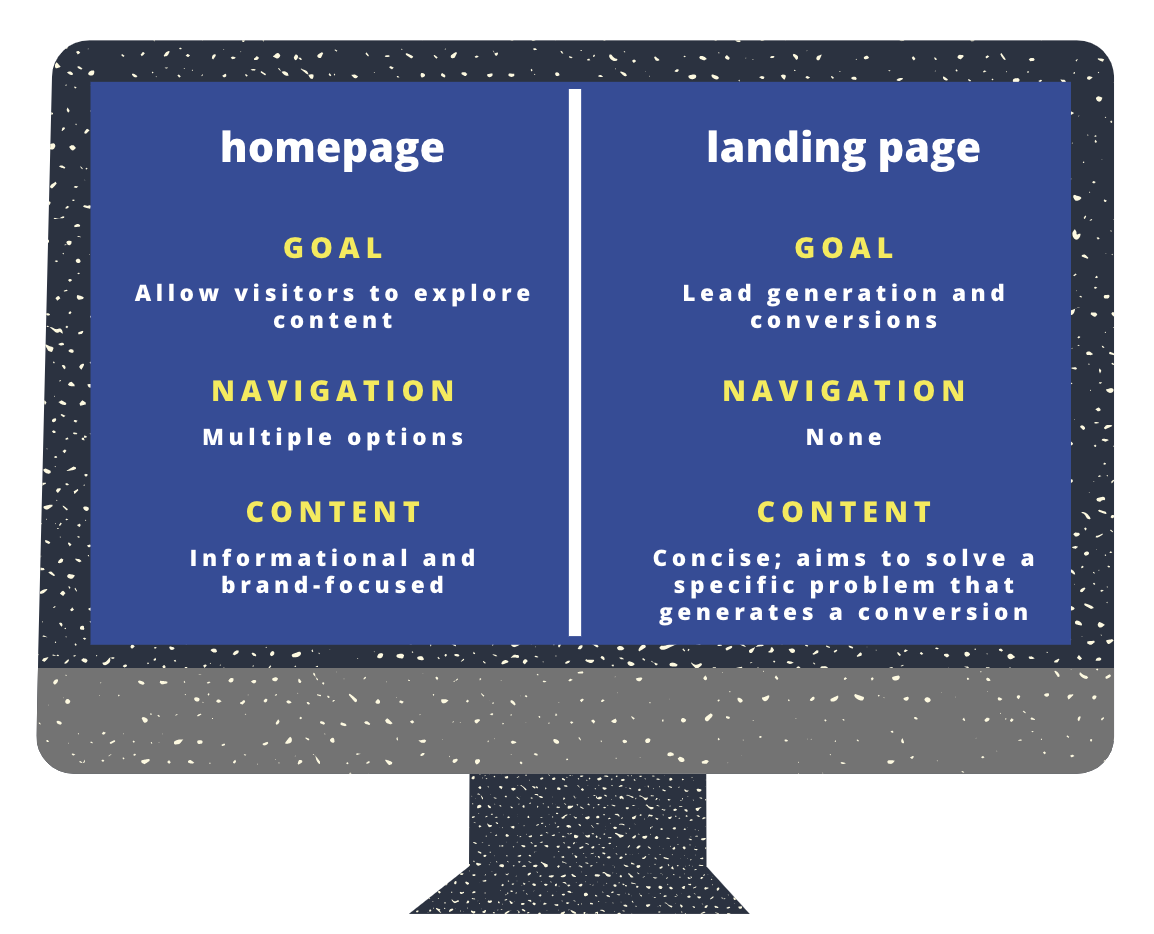 In its simplest terms, the goal of your website, even the home page, is to gain visitor traffic. The goal of your landing pages is to convert that traffic into leads and eventually customers.