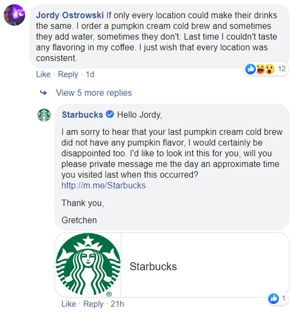 - Facebook (www.facebook.com). Some of the best examples of brand loyalty come from large corporations, like Starbucks. Built on high-quality customer service, the coffee giant has representatives monitoring social media comments and mentions. This allows them to promptly address customers’ concerns, answer questions, and interact with their fanbase.