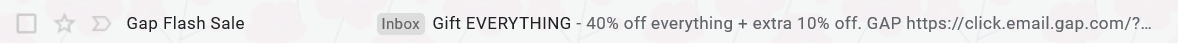 While promoting a recent sale, Gap used the sender name “Gap Flash Sale,” which maintains the company’s name while communicating the purpose of the campaign.