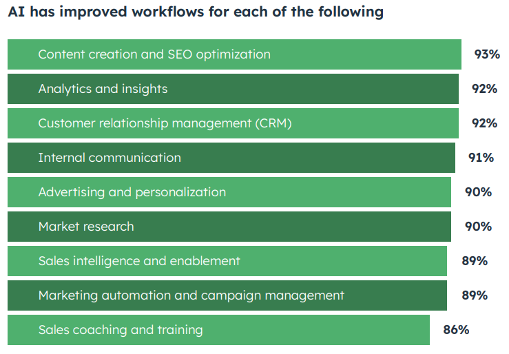 Those consumer-feelings haven’t stopped marketers from utilizing AI, however, incorporating it into their workflows more than their customer-service and sales counterparts. And when marketers do use AI for content, their approaches differ.