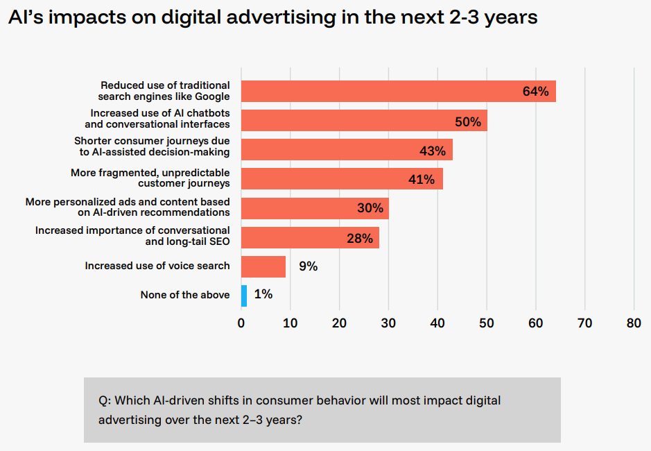 - 64% predict their customers will reduce their use of traditional search engines over the next few years