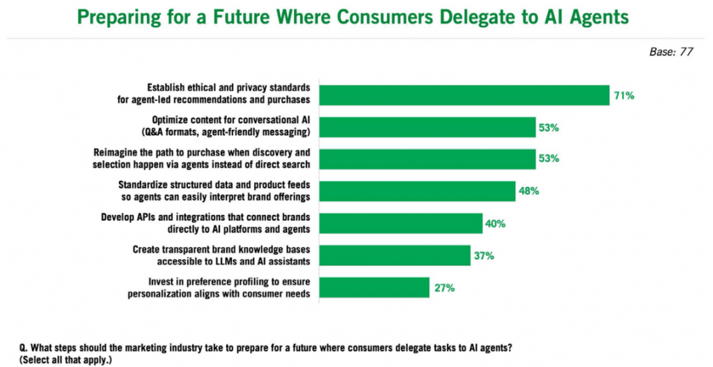 “71 percent of respondents say the industry must establish ethical and privacy standards as AI begins making choices on consumers’ behalf,” says the Signals From The Stage report, which found more than half also wanting the industry to optimize content for conversational AI as well as to “reimagine the path to purchase when discovery and selection happen via agents instead of direct search.”
