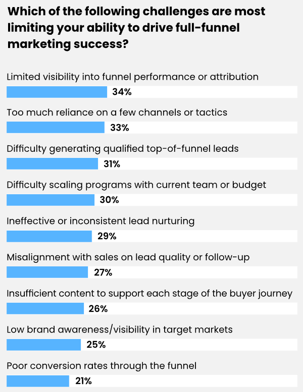 TopRank Marketing’s report, The State of B2B Thought Leadership in 2026, found that 47% plan on increasing their data-driven content and use of original research in the coming year, efforts that can address a number of full-funnel challenges, the most-cited being limited visibility into performance, over-reliance on fewer channels, and difficulty generating qualified leads at the top of the funnel.