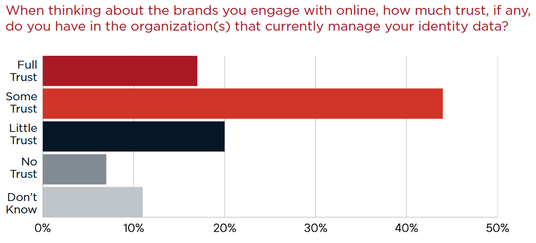 And if the verifying results of Ping Identity’s survey are any indication, most consumers do not trust those entrusted with their identity data, with only 17% saying they fully trust such organizations.